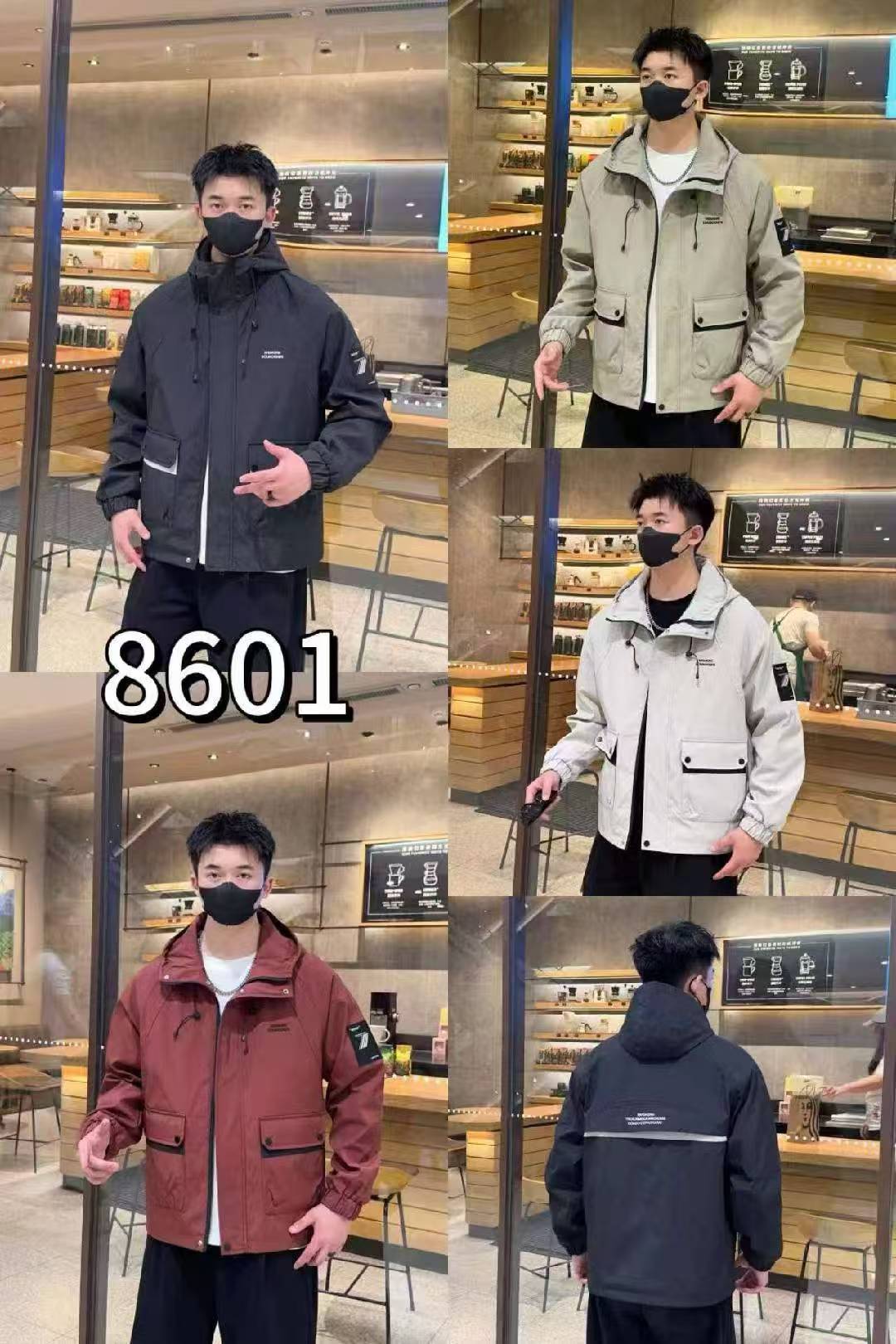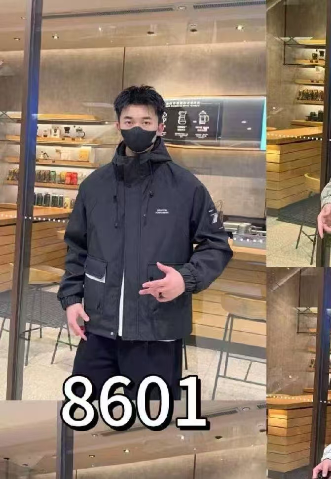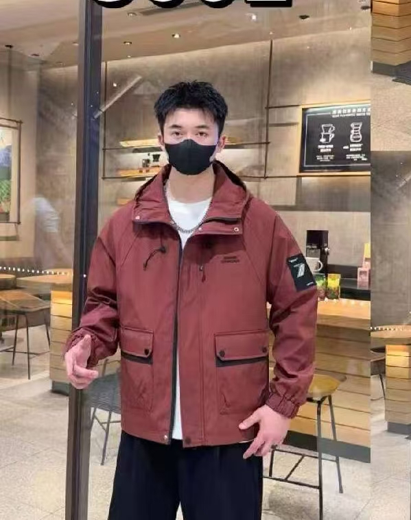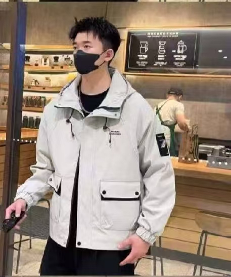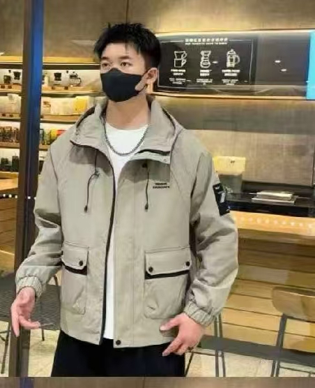 春秋季纯色多口袋时尚大方百搭青少年男士休闲夹克连帽外套工装款